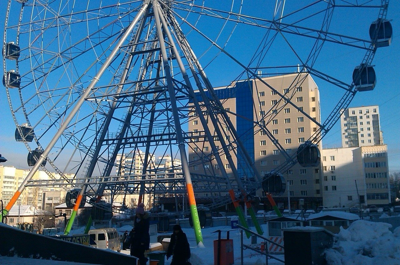 Уфа наконец-то обзавелась вторым колесом обозрения. А 21 февраля уже откроется, хотя ходили слухи, что это произойдет только в мае. Колесо будет самым высоким не только в городе (шутка ли, 58 метров!), но и вообще в Приволжском федеральном округе, а цена покатушки такая же, как на колесе у Горсовета.