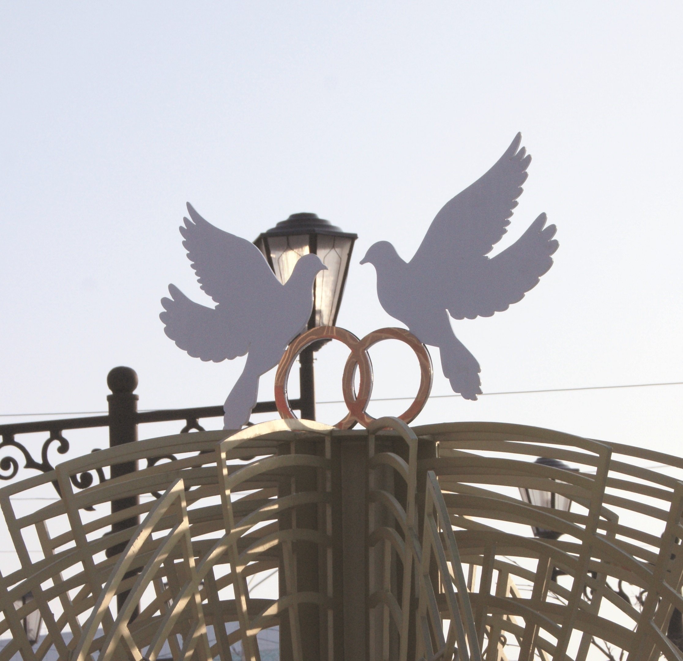 На металлическом дереве около ЗАГСа Кировского района сидят голубки. Эти ребята, конечно, довольно малы и невзрачны, но зато символически служат любви в нашем городе. Не обижайте их.
